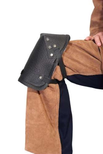 Nakolannik skórzany przeznaczony do ochrony stawów kolanowych przed urazami mechanicznymi tj. starcia i otarcia naskórka oraz przed oparzeniami drobnymi odpryskami metalu, przed zagrożeniami związanymi z manipulacją gorącymi przedmiotami, która nie naraża użytkownika na temperaturę nie wyższą niż 50ºC. Chroni przed schorzeniami wywołanymi zimnem, wilgocią, twardymi powierzchniami.