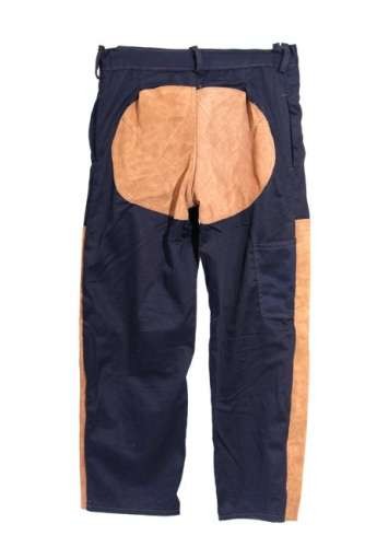 Spodnie o długości do pasa lub spodnie ogrodniczki wykonane są z tkaniny bawełnianej impregnowanej niepalnie o grubości 360g/m2. Przody spodni oraz siedzenie wzmocnione są dodatkowo skóra, wszystkie zakończenia szwów zakończone są nitami co wydłuża okres użytkowania spodni.